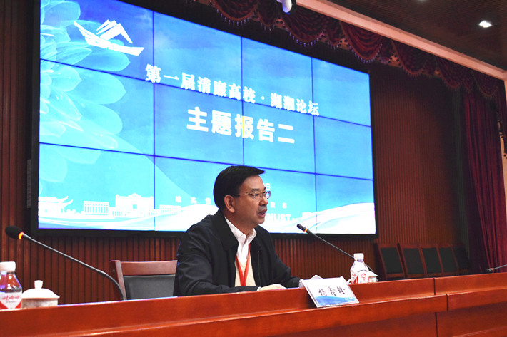 2021年12月10日,“第一届清廉高校湖湘论坛”在湖南科技大学举行,学校纪委书记、省监委驻学校监察专员杨鑫铨出席并主持报告会。