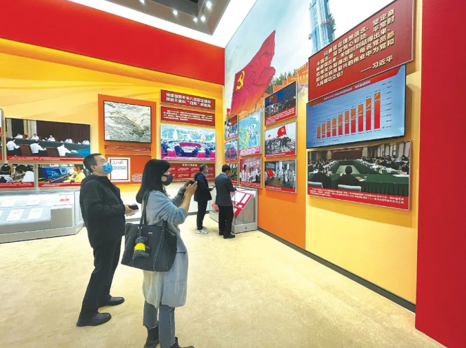 近日,“奋进新时代”主题成就展在北京展览馆正式开幕。图为观众参观“全面从严治党 保持党的生机活力”展区。(本报记者 李玉龙 摄)