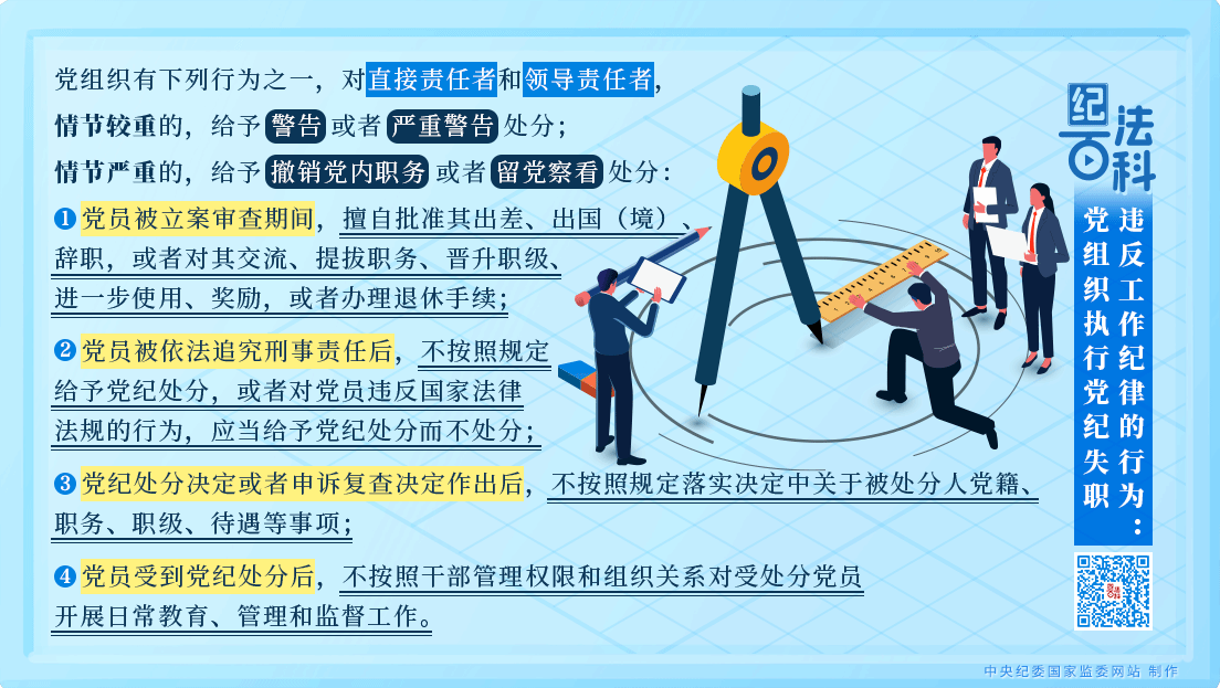 《条例》总则部分规定了对违法犯罪党员的纪律处分,以及执行党纪处分决定的相关要求。《中国共产党纪律检查机关案件检查工作条例》规定了党员被立案审查期间,党组织不得擅自批准的事项。中央纪委、中央组织部等关于受党纪处分的党政机关工作人员年度考核有关问题的相关文件,对有关考核等次作了规定。党组织要认真落实这些规定,严格执行党的纪律,真正发挥党纪的刚性约束作用。(来源:中央纪委国家监委网站)